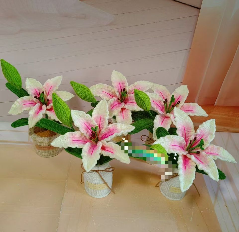 Fleur Artificielle Tricotée à la Main Tulipes Plantes en Pot Amigurumi Fleurs Bouquet Artisanat Fait à la Main Jamais Flétrissement Fleur Éternelle
