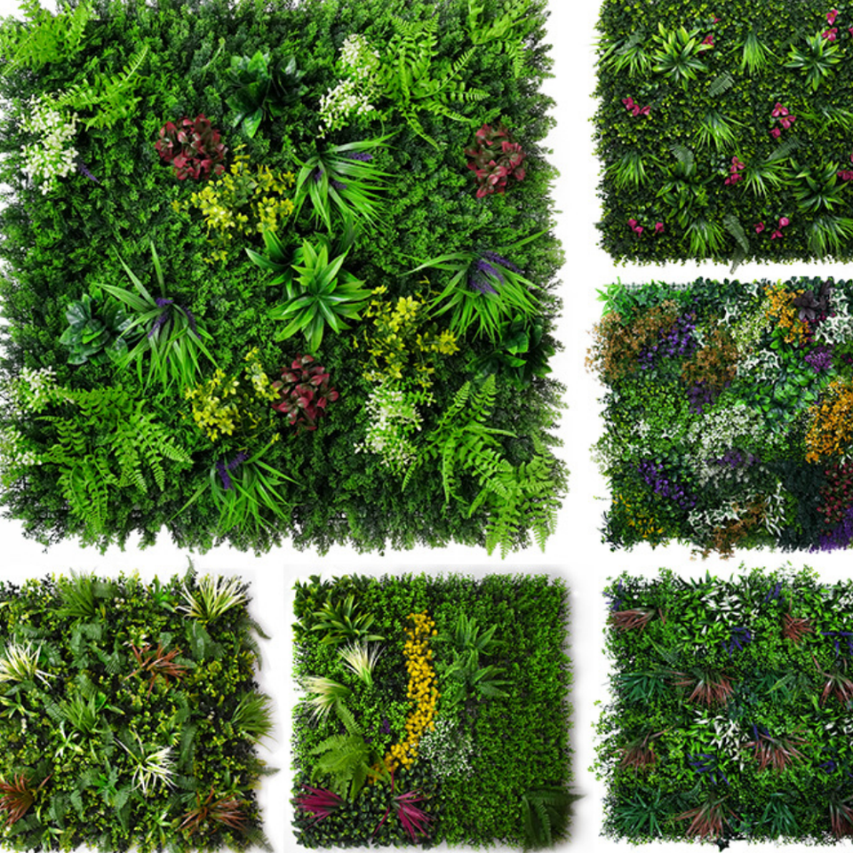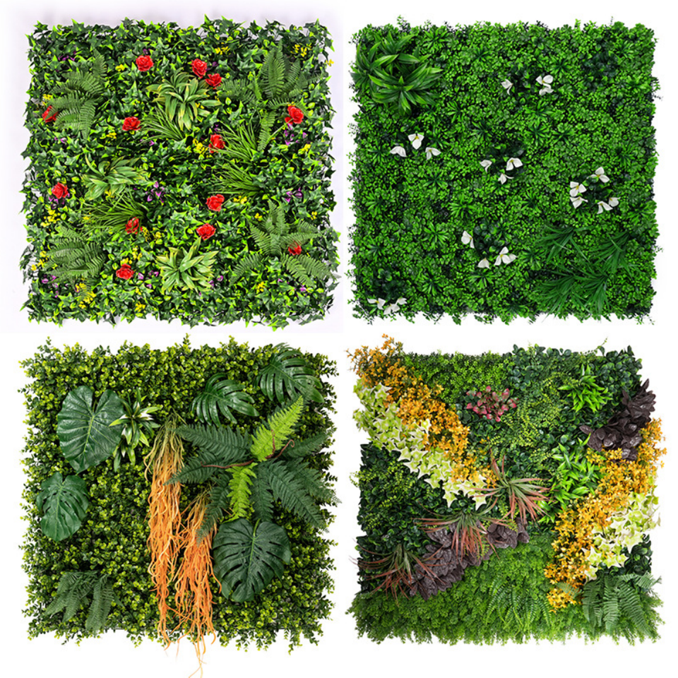Panneau mural de fleurs artificielles 1m x 1m, design personnalisé, fond végétal pour la décoration intérieure et extérieure des centres commerciaux et des maisons en Chine