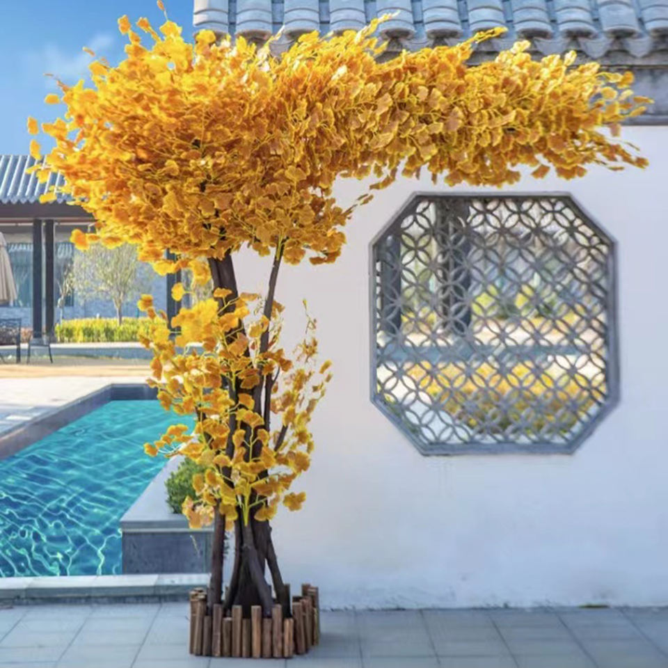 Arbre de Ginkgo artificiel résistant aux UV, fausse plante de Ginkgo biloba pour la décoration intérieure et extérieure de la maison et du jardin