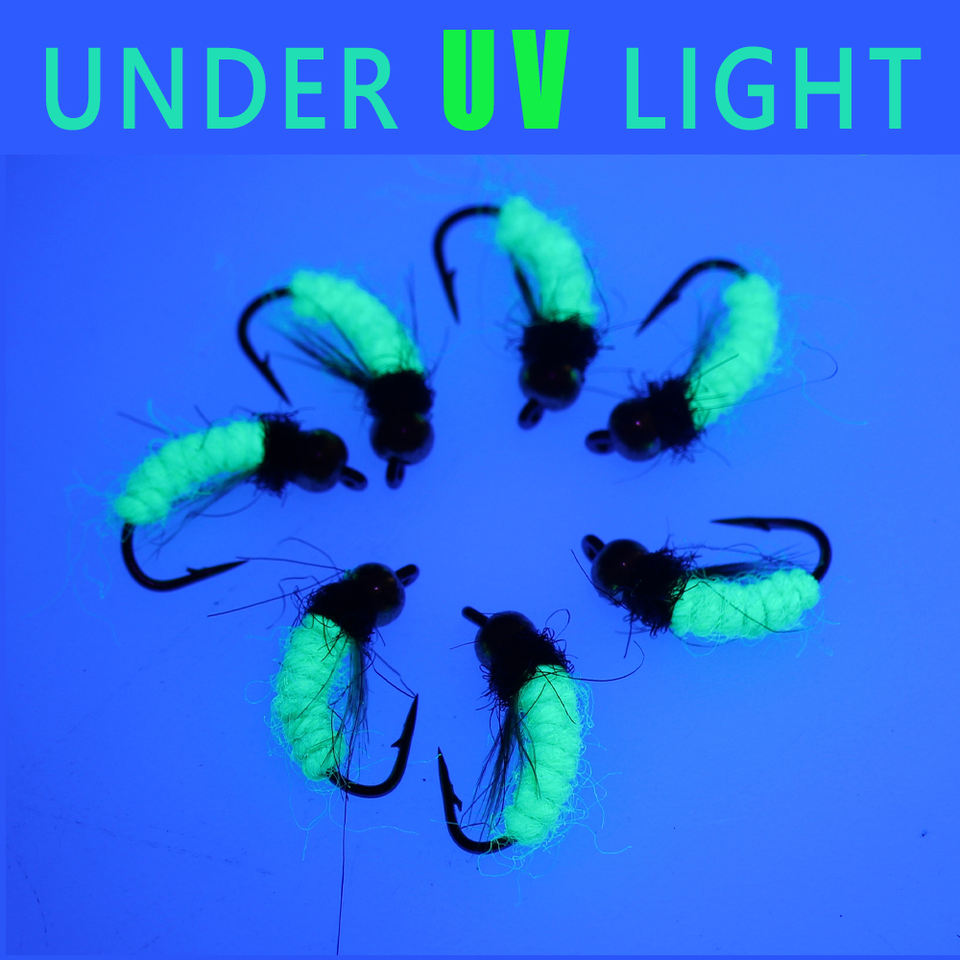Appât artificiel pour la pêche en forme d'insecte, leurre pour attraper des poissons, fluorescents, nymphe de mouche, UV, en laiton, avec tête plombée