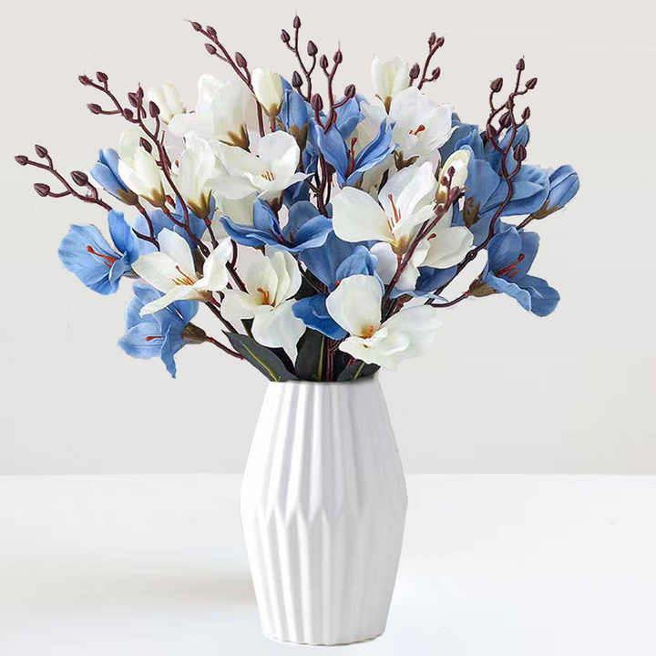 Fleur de Magnolia Artificielle 5 Têtes Décoration de Table Longue Durée Style Européen Saint-Valentin Noël Diplôme