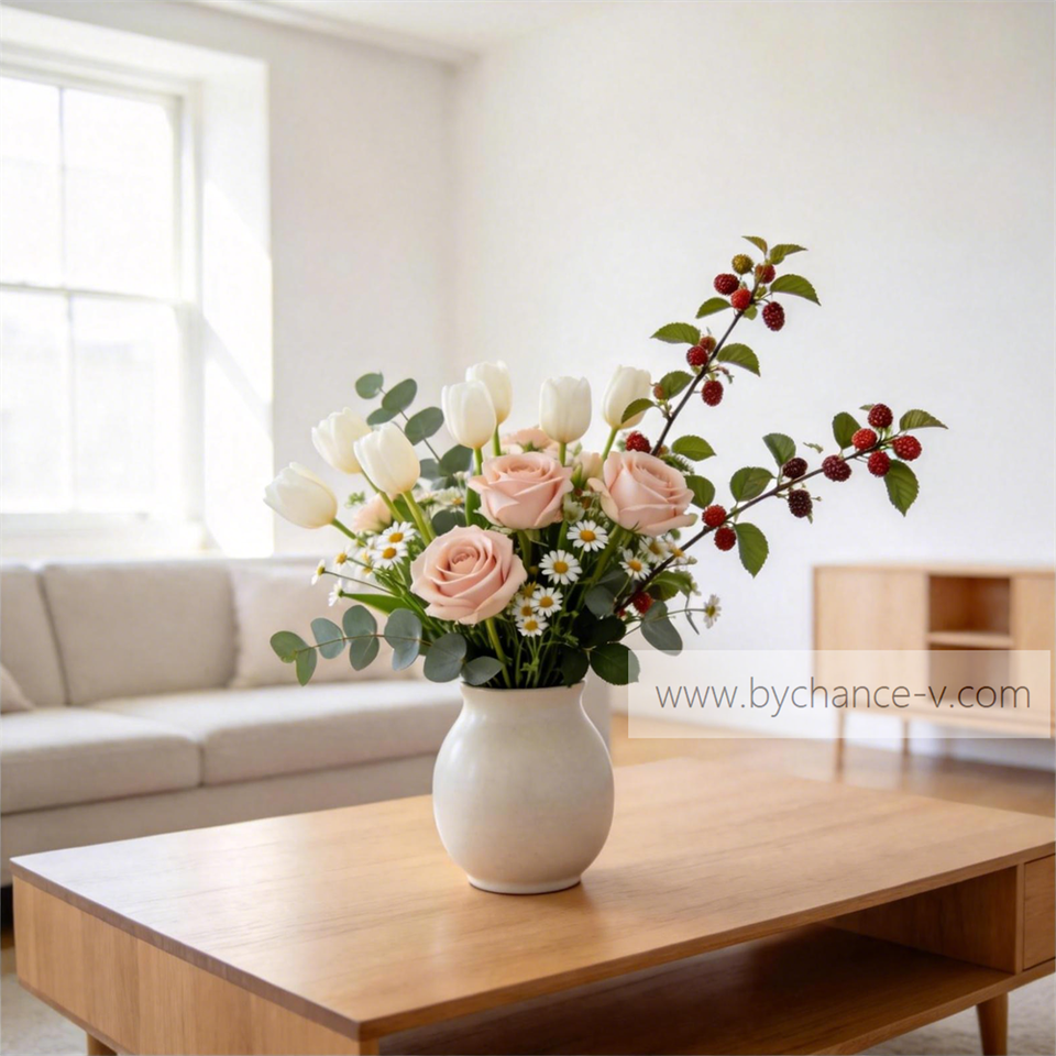 Branche de mûrier artificielle pour la décoration intérieure, idéale pour un vase de sol moderne et minimaliste dans le salon, ou comme centre de table pour une composition florale dans la salle à manger.