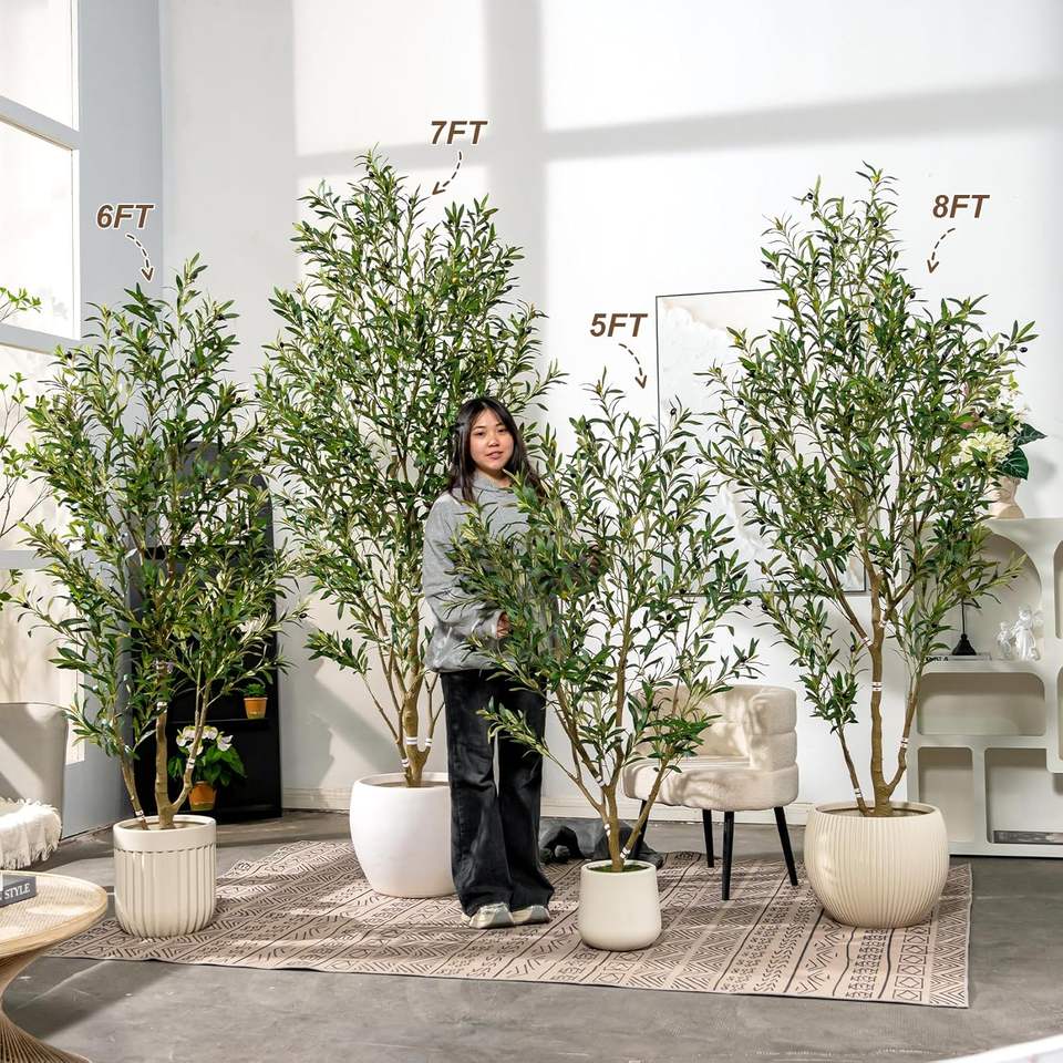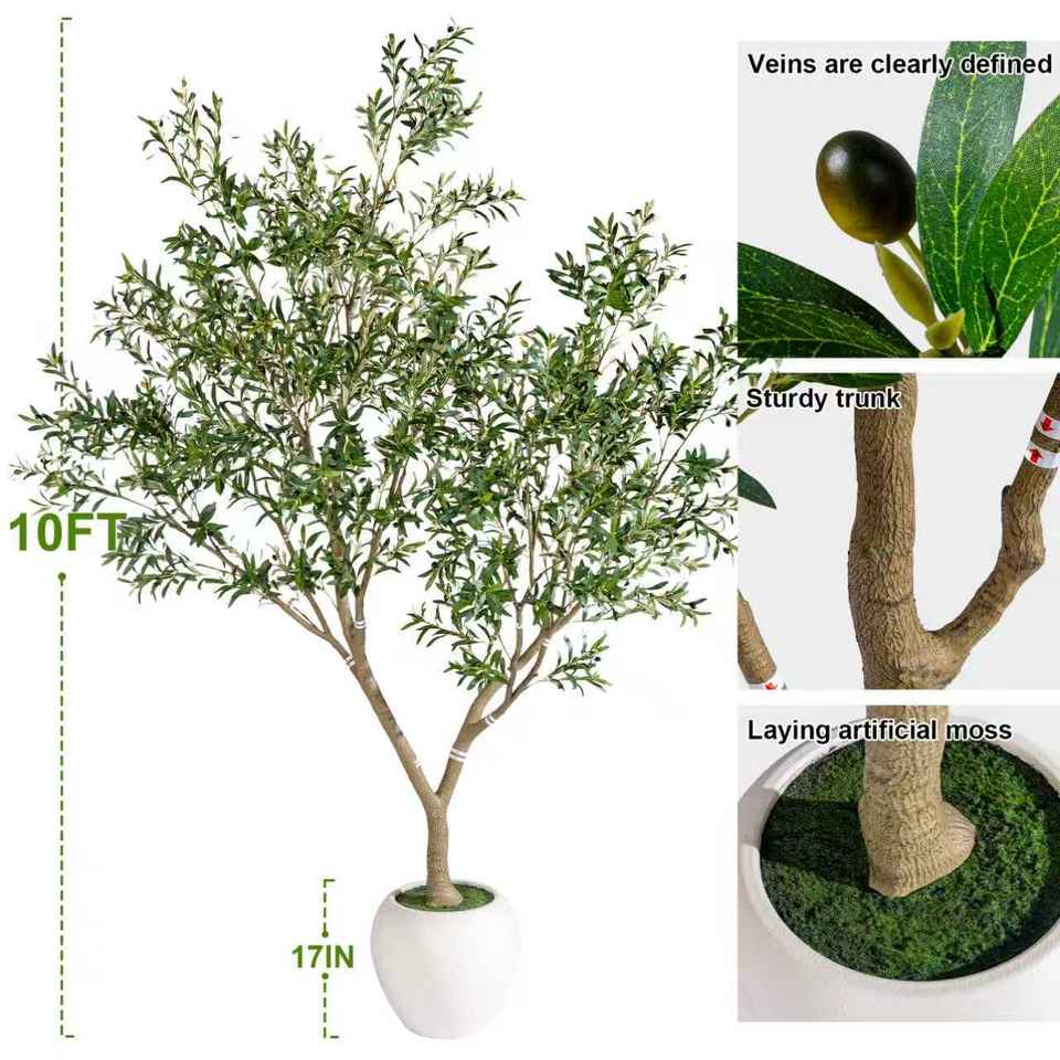 Arbre d'olivier artificiel avec un tronc en résine réaliste et des feuilles vertes pour la décoration intérieure du bureau, du salon, avec un pot blanc