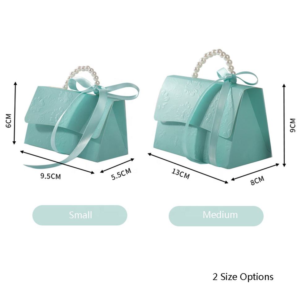 Boîtes à main en papier avec ruban et poignée en perles artificielles, boîtes cadeaux pour bonbons, chocolats, emballages pour mariage, anniversaire, décoration de fête