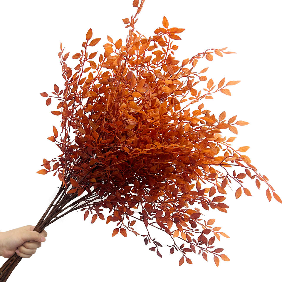 Artificial Plant Leaves Branches Nandina Stem Bamboo Shrubs Ficus Twig for Halloween Vase Autumn Wedding Home Office Decor