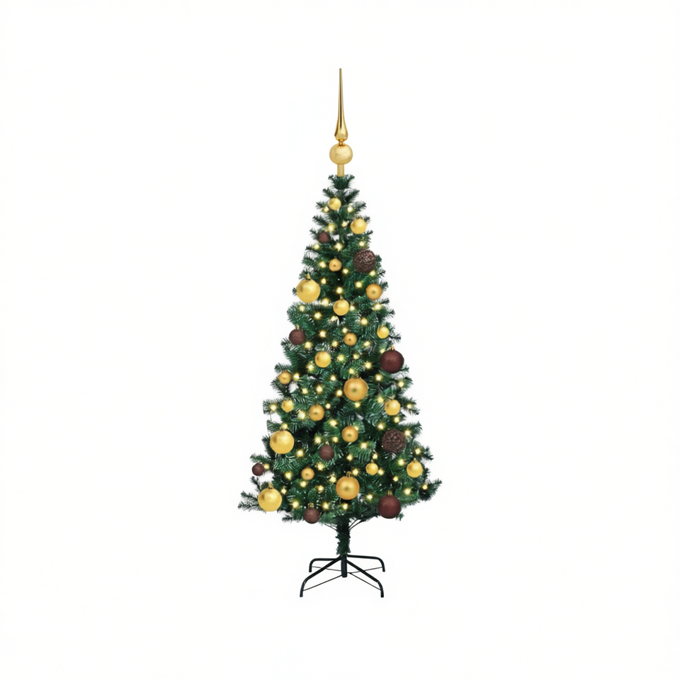 Sapin de Noël artificiel pré-éclairé 47,24 pouces en PVC vert, structure métallique, LED blanc chaud, arbre d'intérieur sur pied avec décorations