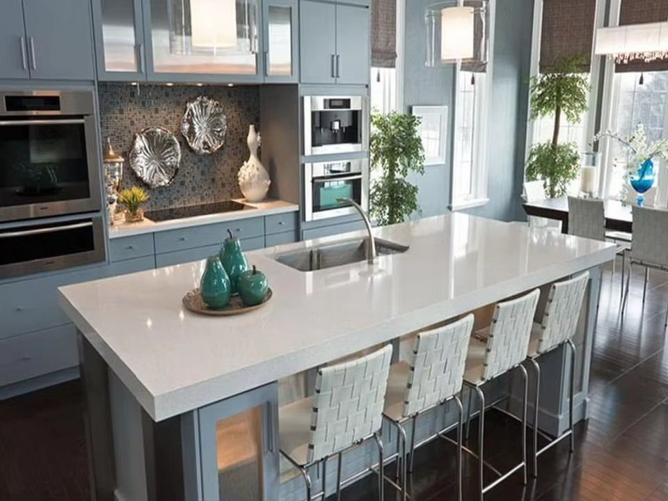 Tables à manger en pierre de quartz artificielle / Tables en surface solide en quartz scintillant, grande dalle, 93% de poudre de quartz naturelle + 7% de résine CN;GUA