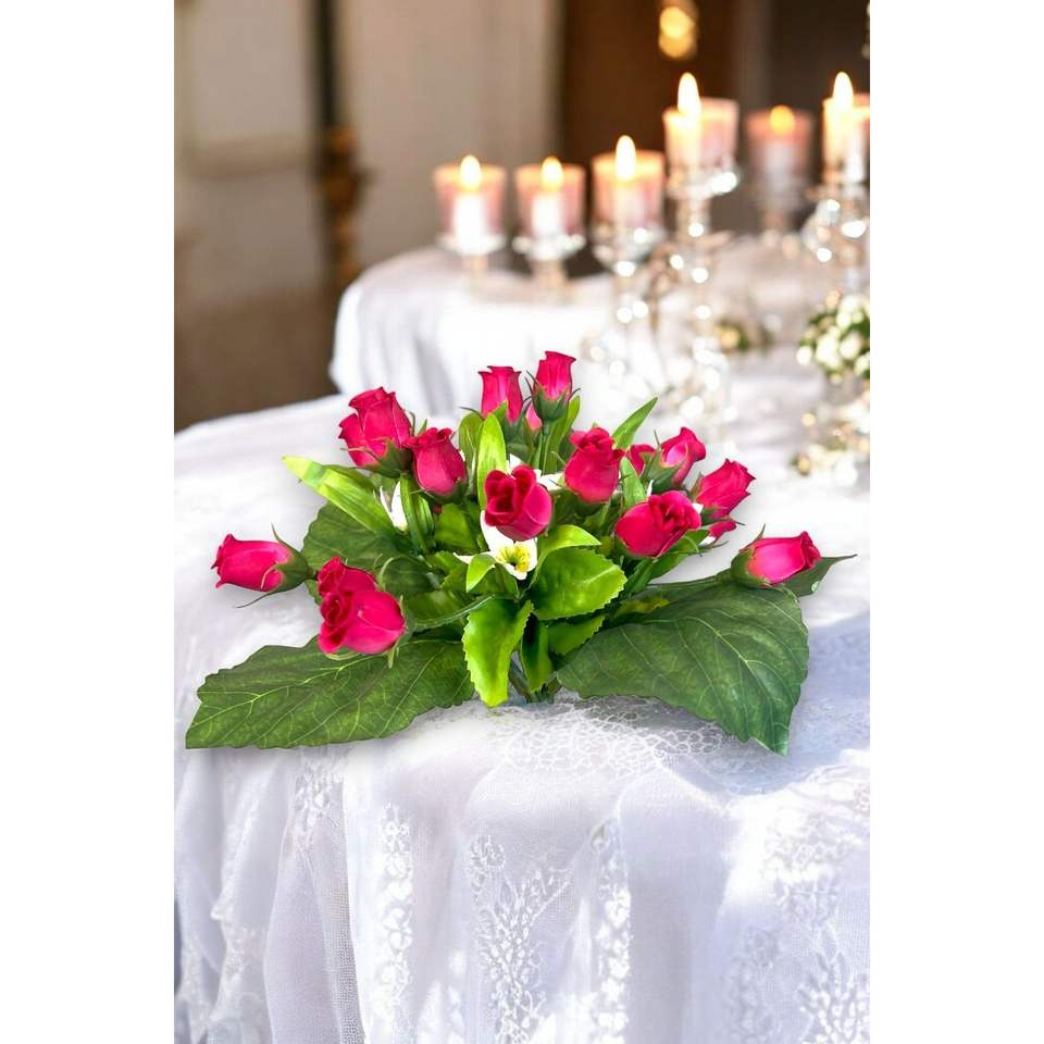 26cm Red Artificial Rose Bouquet Artistic Artificial Flowers