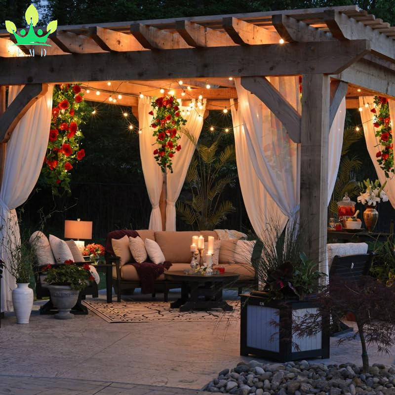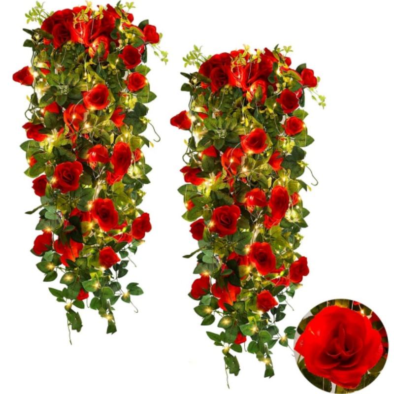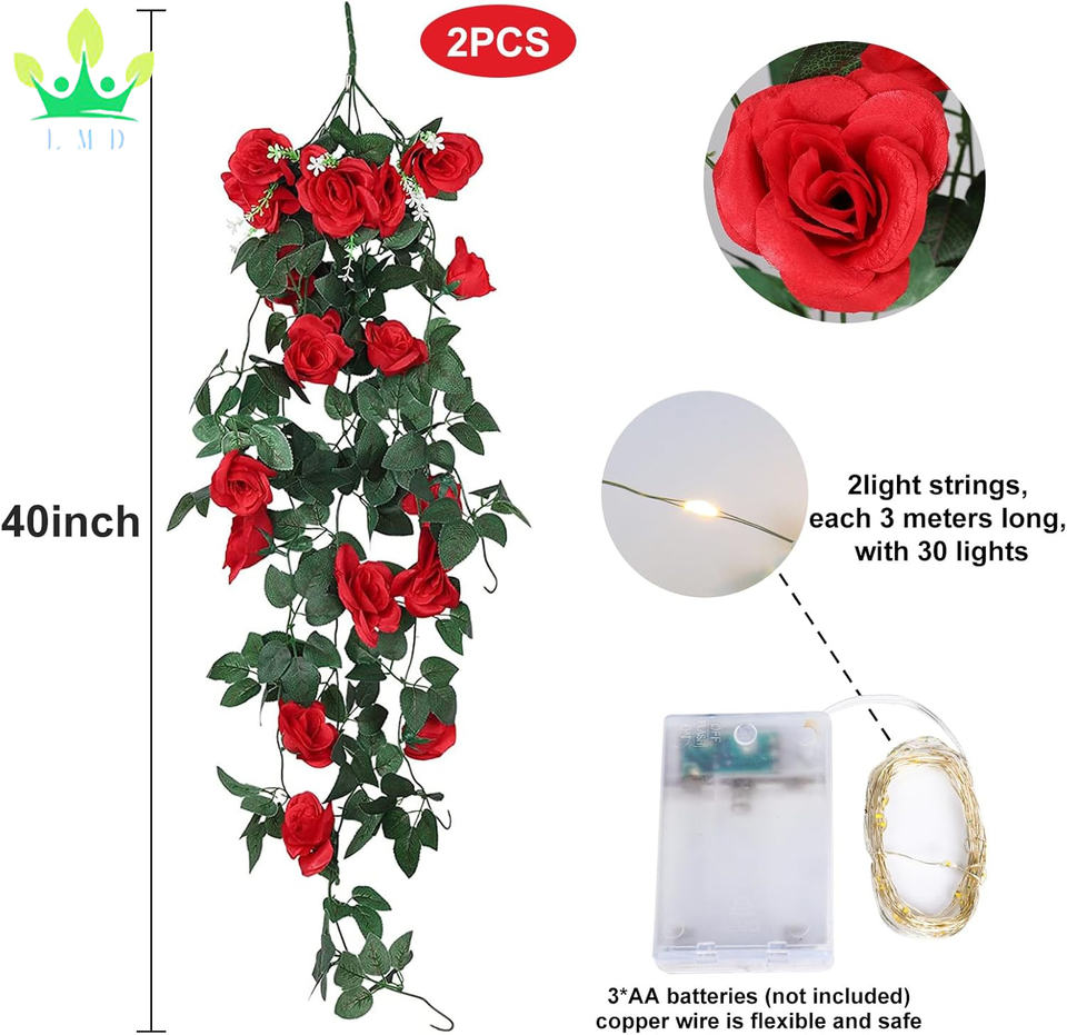 Rose artificielle fleurs suspendues verdure suspendus vigne flore avec 30 LED fée guirlande lumineuse mur décoration de fête de mariage