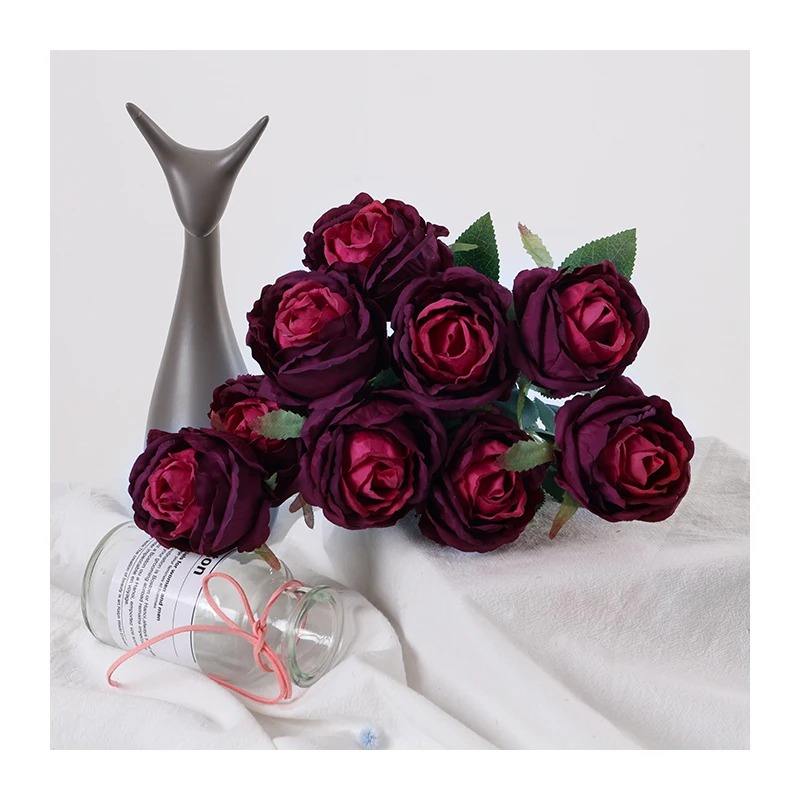 Nom du produit:Mei Yun 9 têtes brossées petite rose à bord brûlé