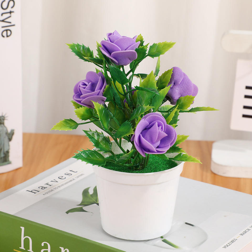 Plante artificielle en pot de rose en plastique, décoration créative pour la maison, verdure, paysage, fausse plante en pot, ornement