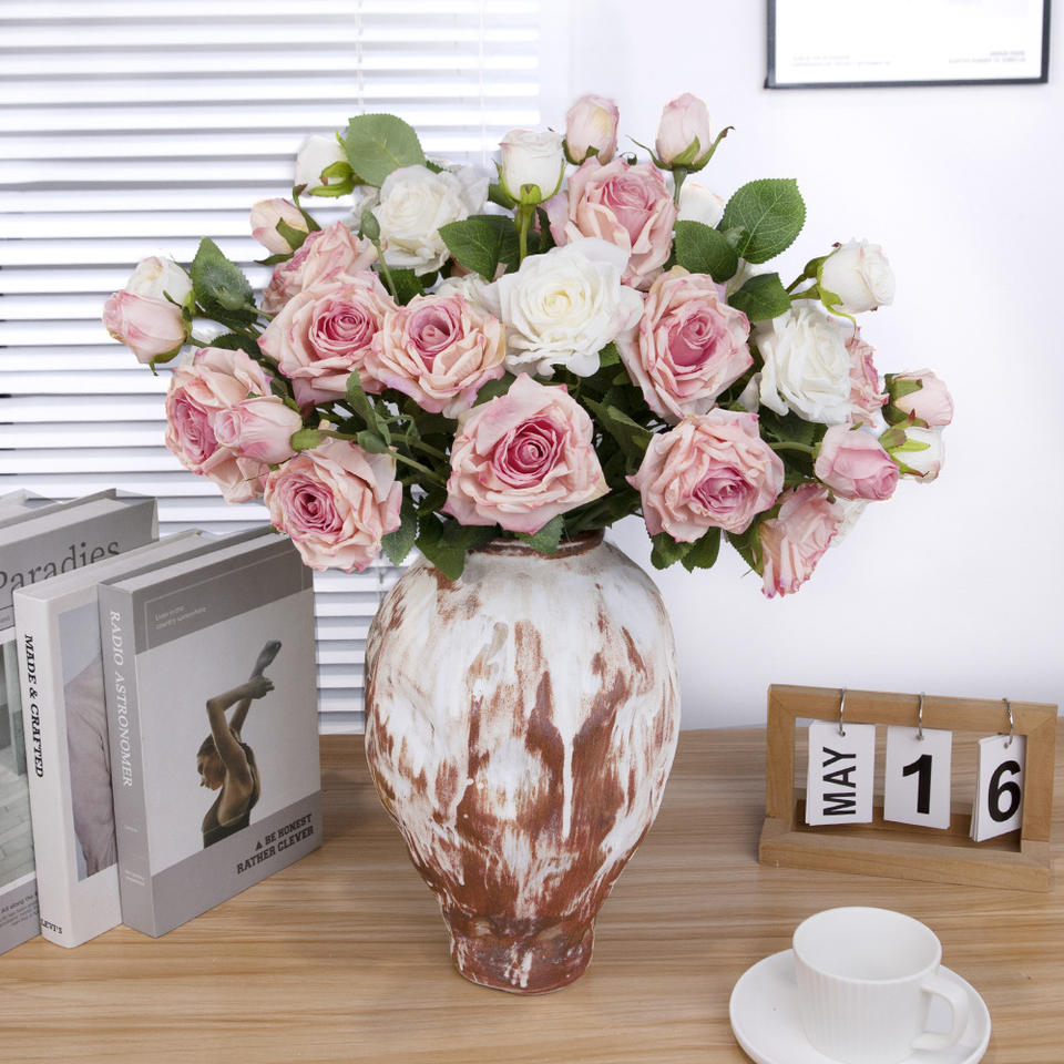 Roses artificielles 52 cm, fleurs en soie, haute simulation, décoration de mariage, décoration de salon