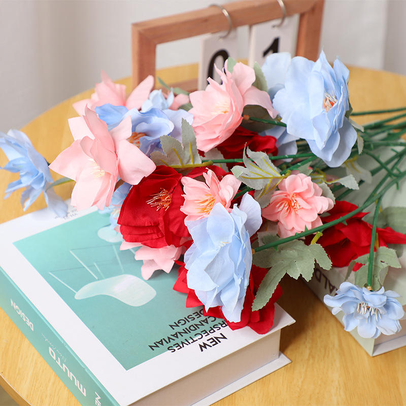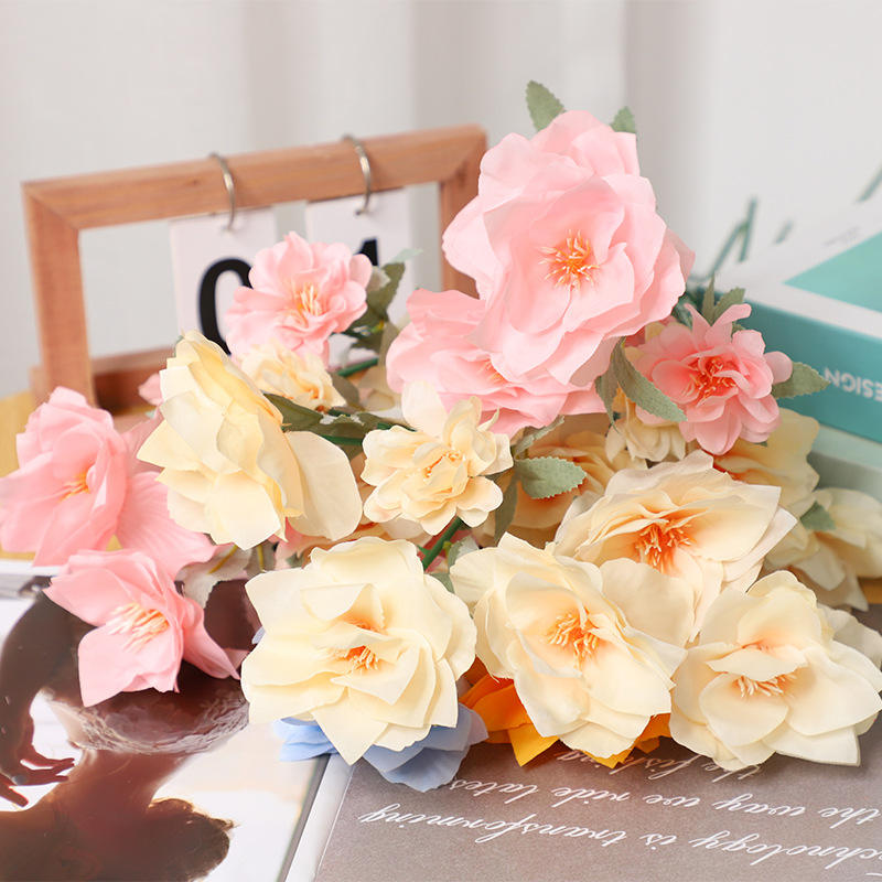 Roses artificielles roses et jaunes en soie, décorations de mariage, arrangements au sol haute simulation