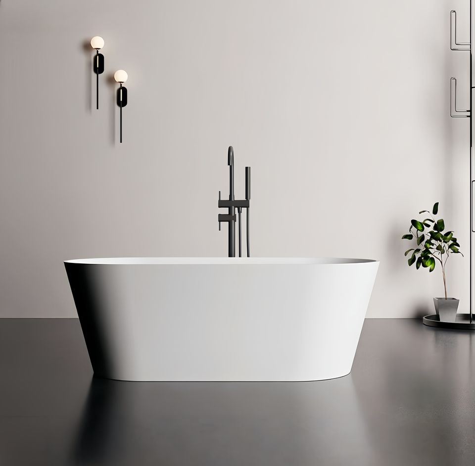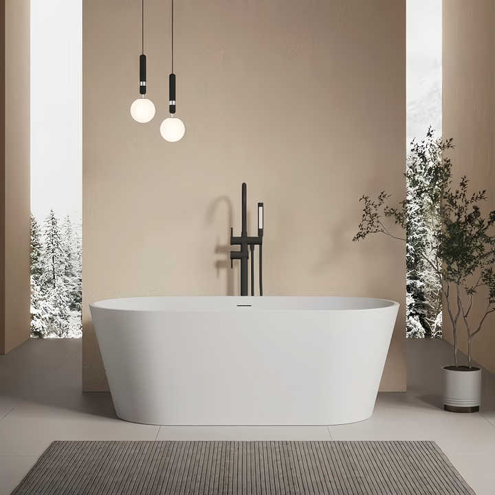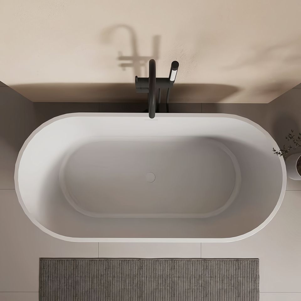 Baignoire autoportante ovale en pierre artificielle, finition mate moderne, surface solide, pour usage intérieur en hôtel, baignoire profonde