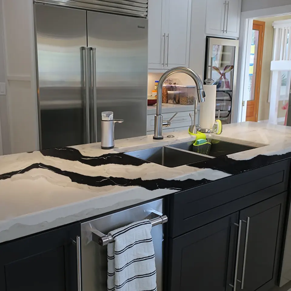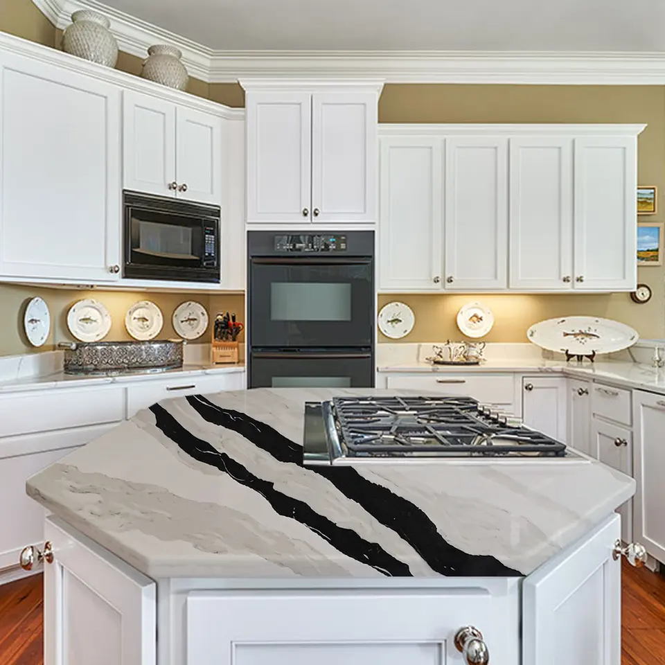 Comptoir de cuisine en pierre de quartz blanc artificiel Comptoir de réception Dessus de cuisine Quartz artificiel plein Bullnose