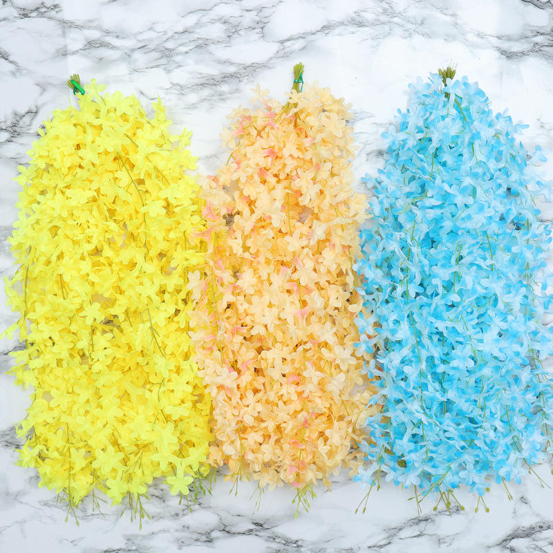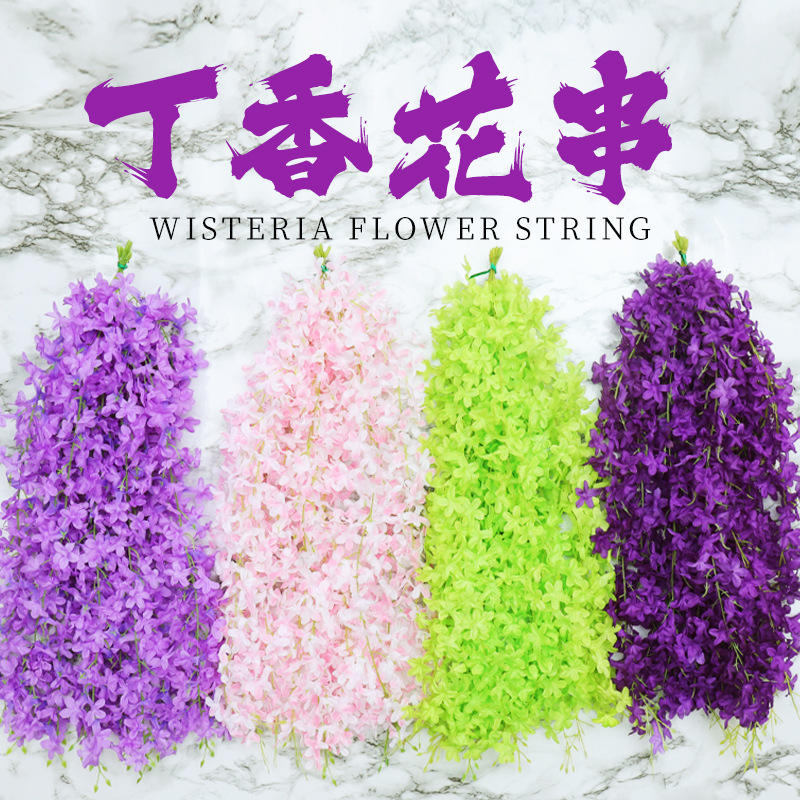 Guirlande de fleurs artificielles de glycine, violet, rose, vert, pour décoration de mariage, maison, plafond, mur.