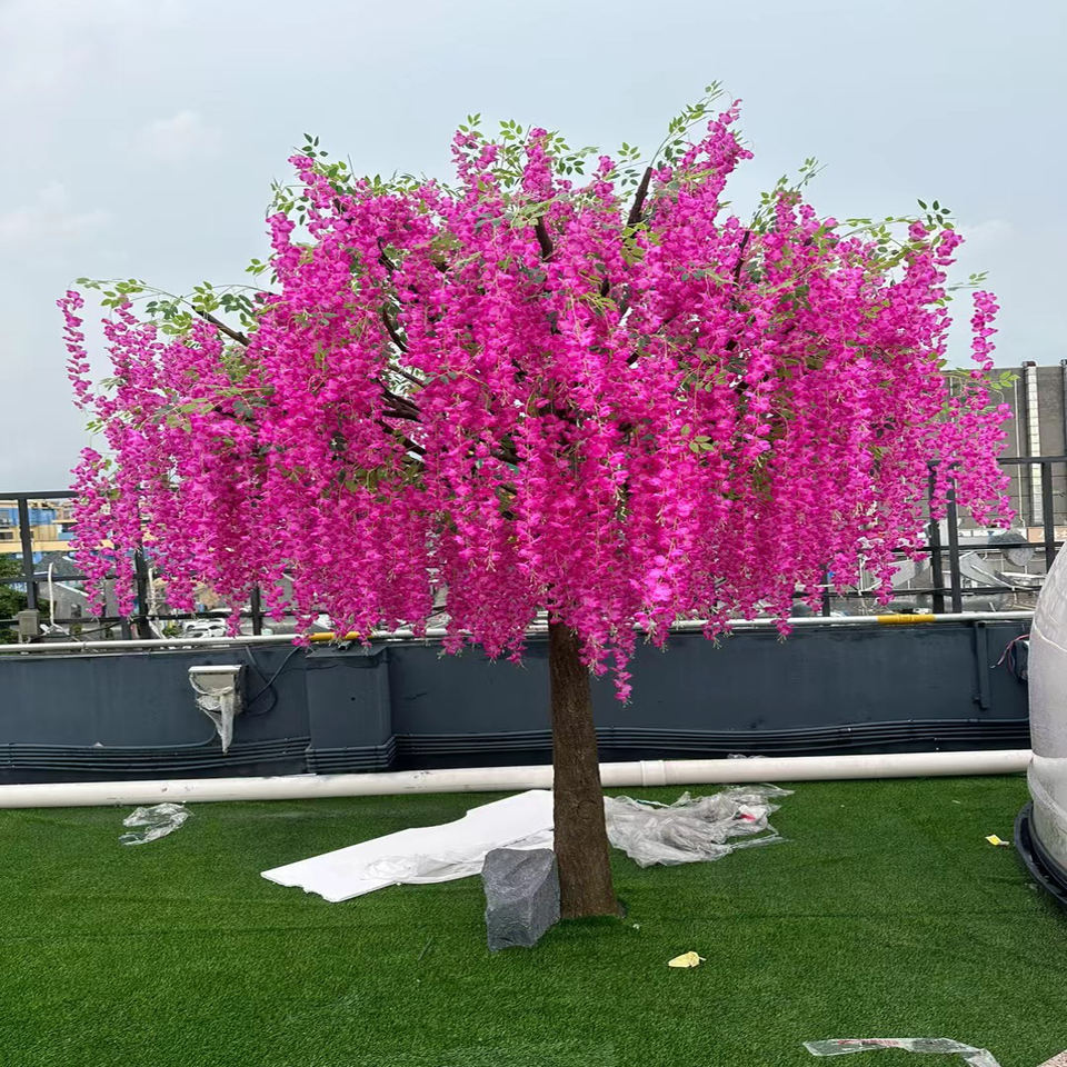 Arbre de glycine artificiel, feuillage complet, arbre à fleurs réaliste, sans entretien, pour décoration intérieure et extérieure