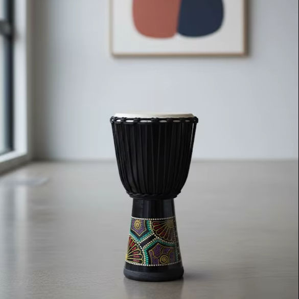SOLOBEAT Artisan Black Djembe Drum Hand Painted Tribal Dot Art Percussion High Tension Rope System Drum Accessories