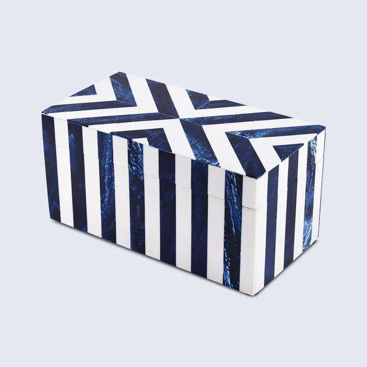 Boîte à bijoux rectangulaire artisanale en os incrusté, design Chevron en résine bleue, faite à la main, luxe moderne, pour salon, pour ranger les souvenirs