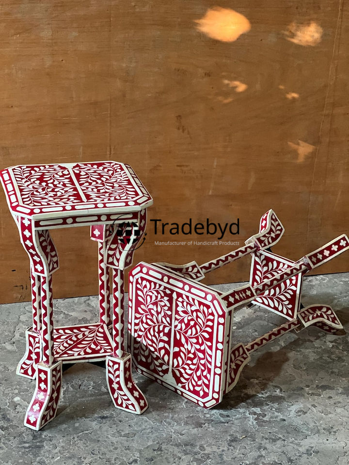 Tabouret Artisan en Incrustation d'Os pour Espaces Modernes et Traditionnels Pièce de Console Premium de Tradebyd