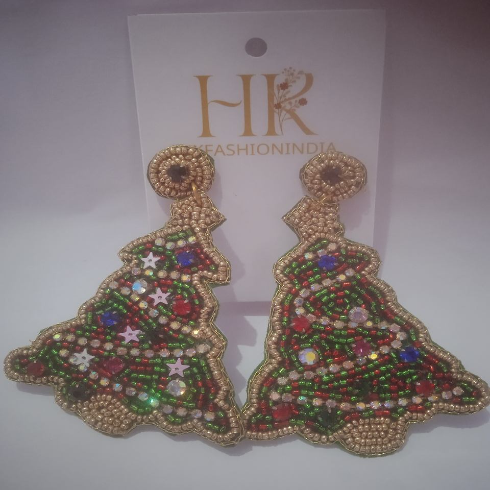 Artisan Gold Beaded Earrings for Women Unique Festive Holiday Jewelry for Winter Weddings Parties Christmas Tree Trendy Xmas