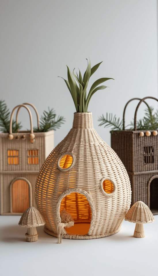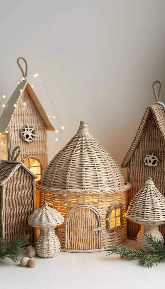 Artisan-Crafted Natural Rattan Christmas Bell Ornament Decorative Furniture Toy for Tree or Holiday Gifting