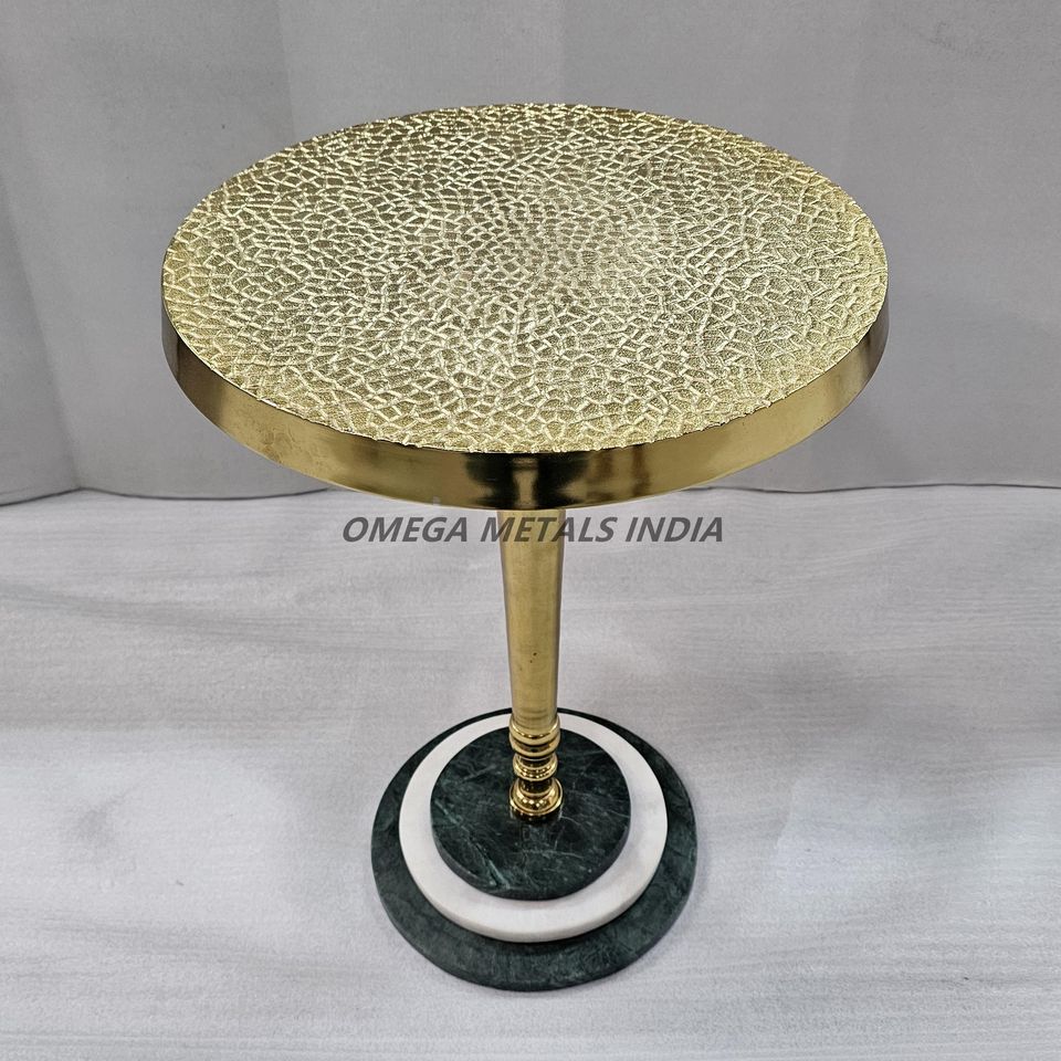 Table d'appoint au design artisanal moderne avec une texture dorée saisissante et une base en marbre élégante Table d'appoint pour salon
