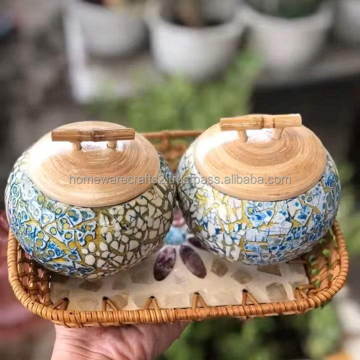 Boîte artisanale en incrustation de coquille d'œuf, fabriquée à la main, organisateur de rangement en fibre de bambou écologique, cadeau prêt à l'emploi en provenance du Vietnam
