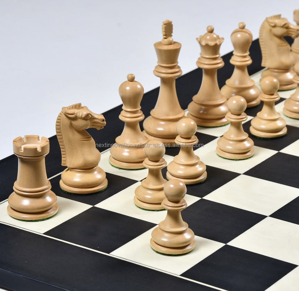 Jeu d'échecs artisanal en corne, plateau somptueux et pièces fabriquées avec précision
