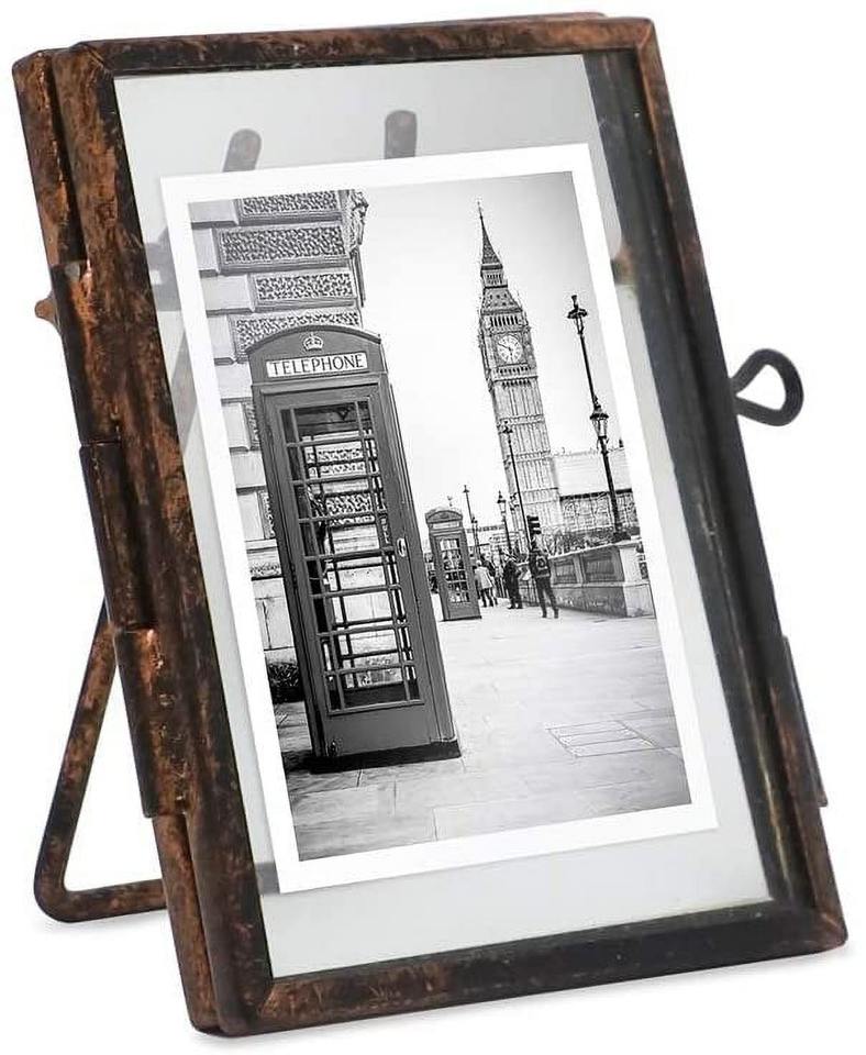 Cadre photo minimaliste en métal de style artisanal avec finition en fer texturé rustique pour les coins et les maisons artistiques de forme carrée