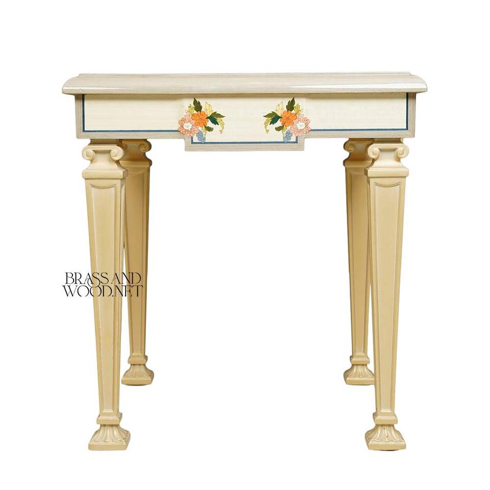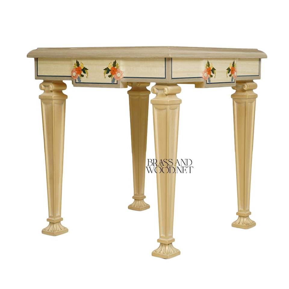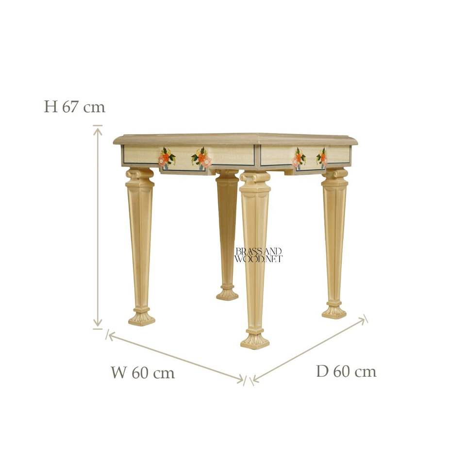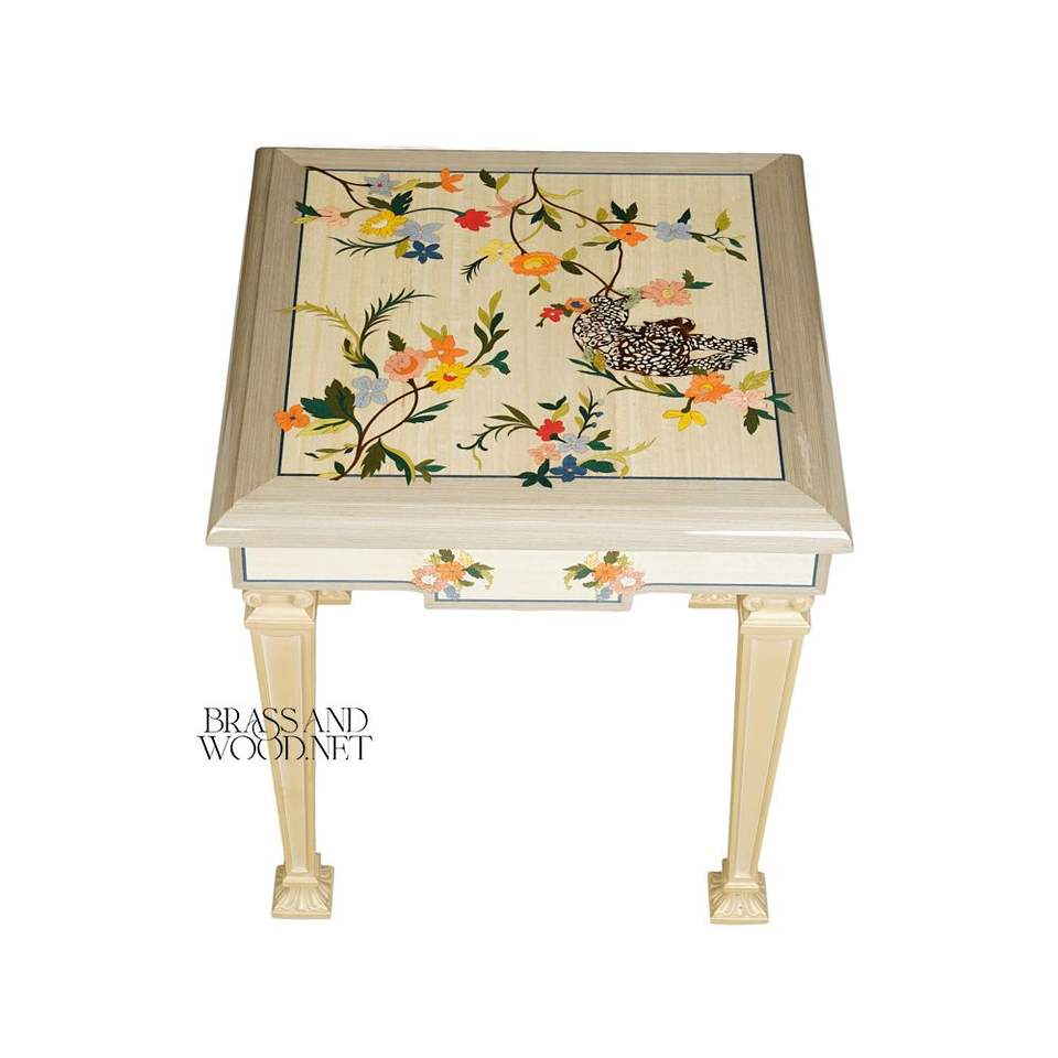 Table d'appoint carrée artisanale avec incrustation marqueterie animale colorée et détails floraux peints à la main pour une décoration intérieure de luxe