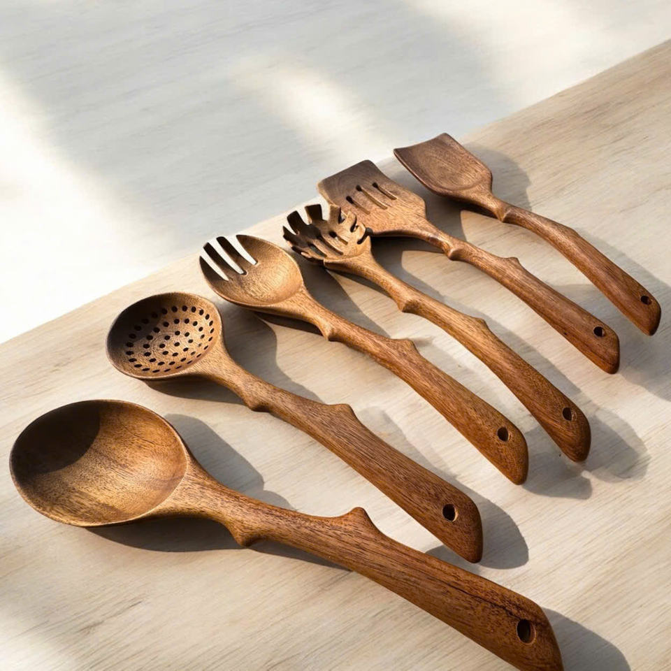 Artisanal wooden kitchenware elegant wood spoon handcrafted cutlery sustainable utensils bulk wholesale rustic wood spoons