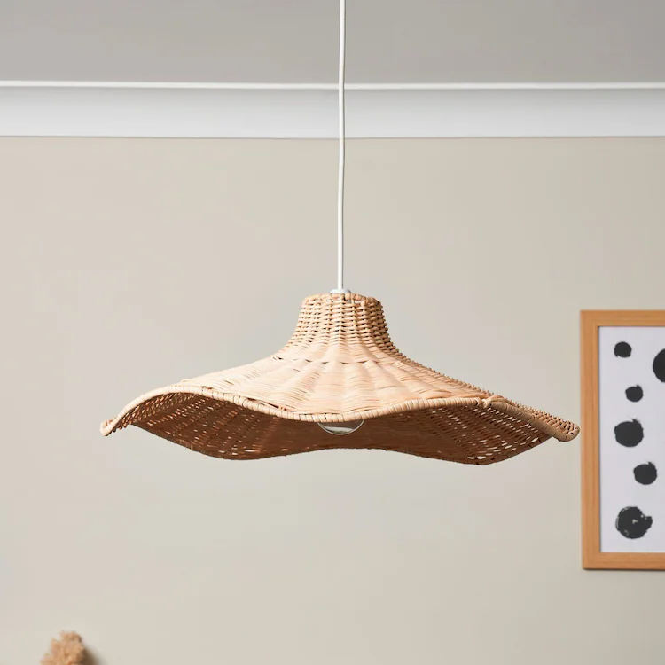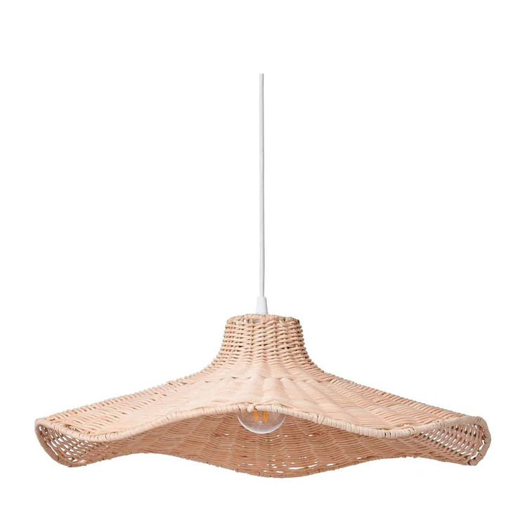Abat-jour artistique en rotin fait à la main en bambou avec design ondulé pour intérieurs Boho ou Japandi