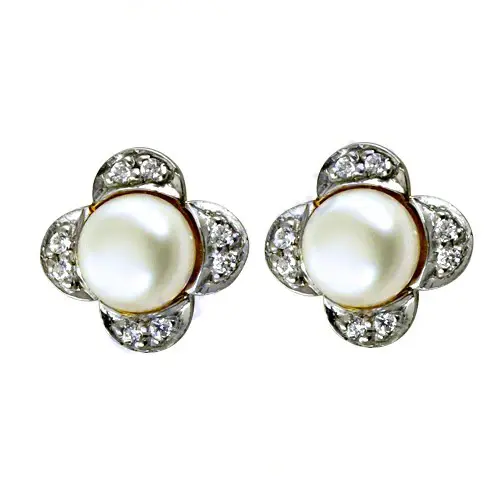 "Artistic Clover Diamond Stud Earrings by Pearl & Diamond"