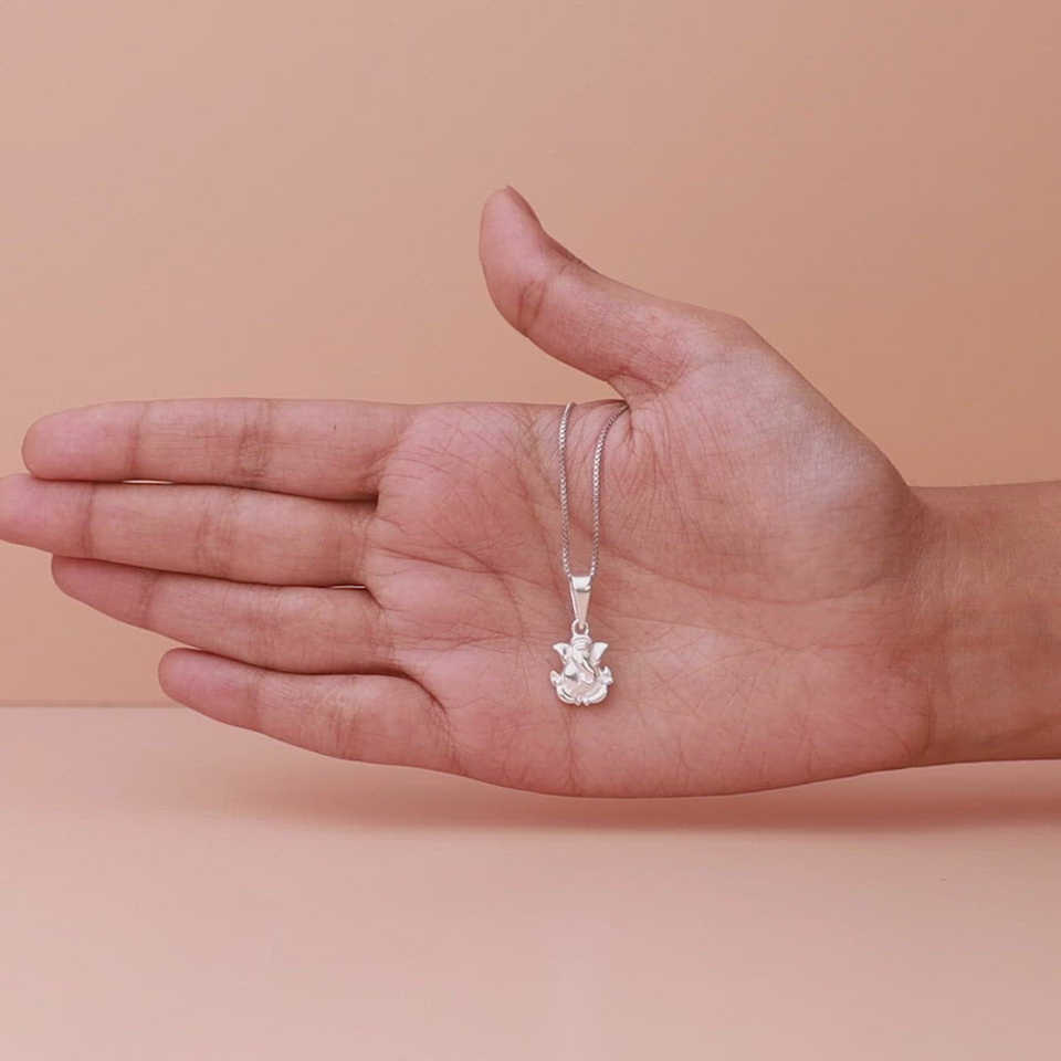 Pendentif Ganpati artisanal en argent avec finition plaquée argent, chaîne en boîte durable, occasion de fête, bijoux pour femmes