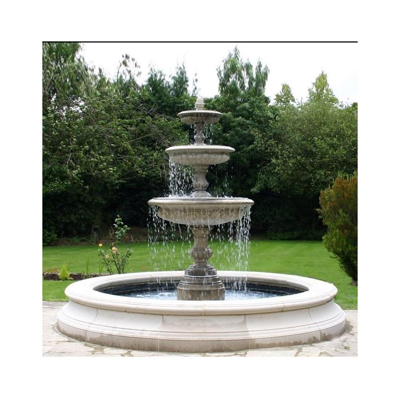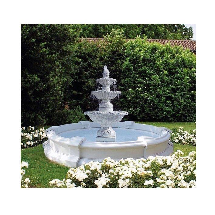 Artistic Marble Garden Fountain with Hand Carved Floral Pattern for Courtyard Villa Patio Resort and Outdoor Heritage Decor