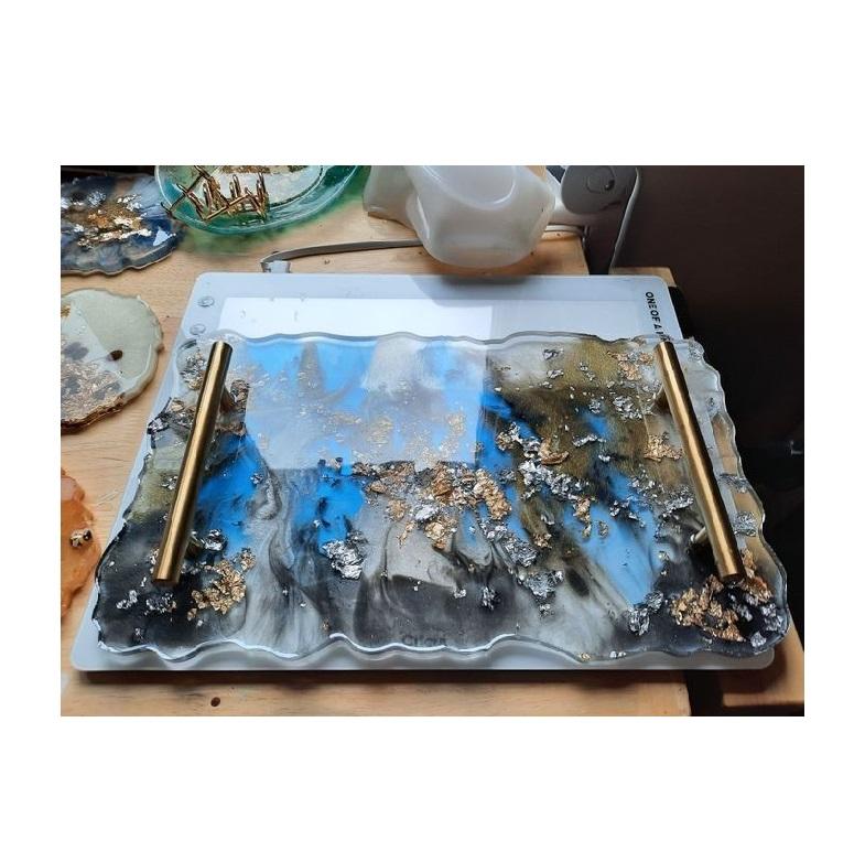 Plateau en résine artistique couleur émail finition moderne fabriqué à la main Design Durable fait à la main couleur personnalisée pour les fêtes mariages