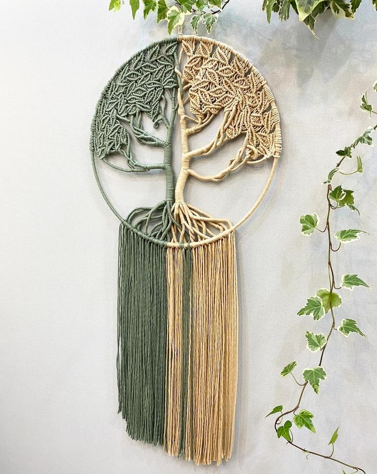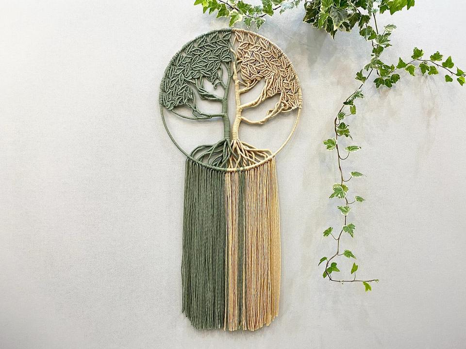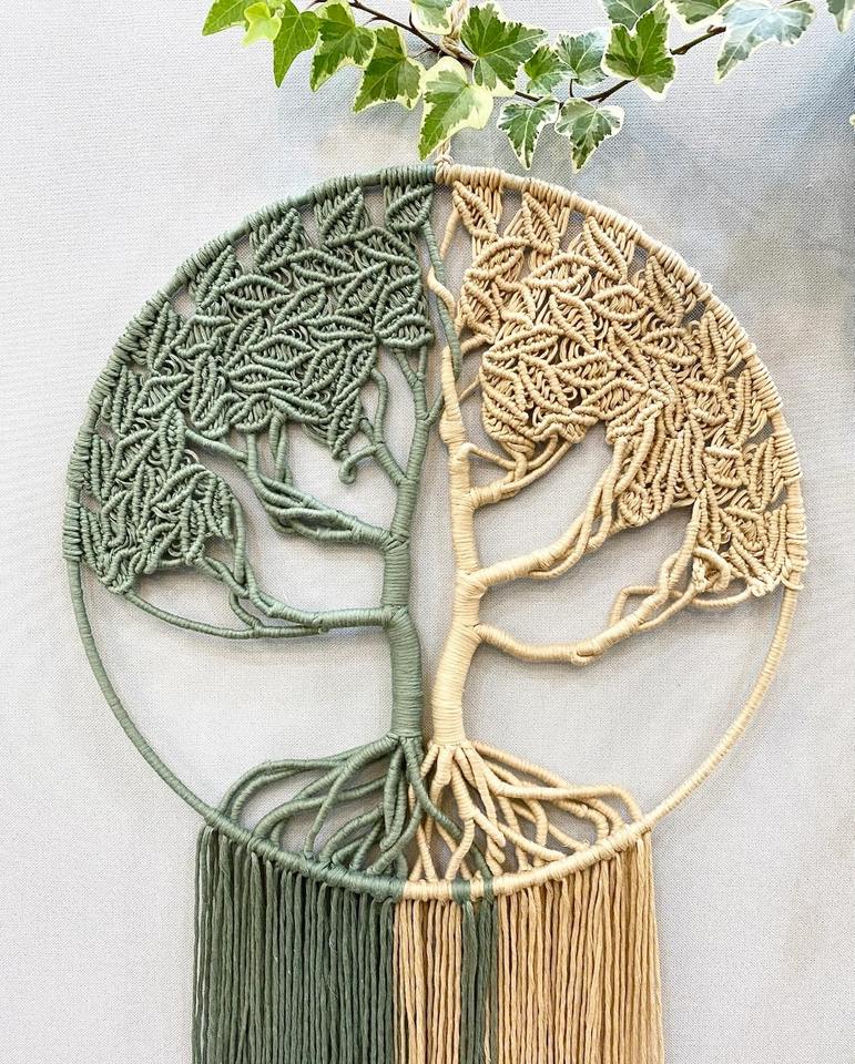 Suspension murale ronde en macramé au design d'arbre artistique pour une décoration intérieure inspirée de la nature, un élégant présentoir mural et une idée cadeau en provenance d'Inde