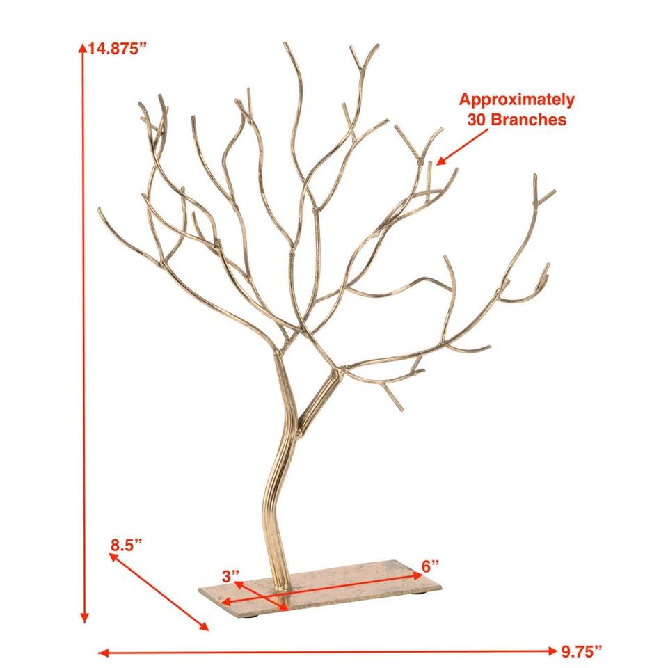 Présentoir à bijoux artistique en forme d'arbre avec crochets en forme de branches, support large anti-emmêlement pour colliers, base stable, rangement décoratif pour coiffeuse