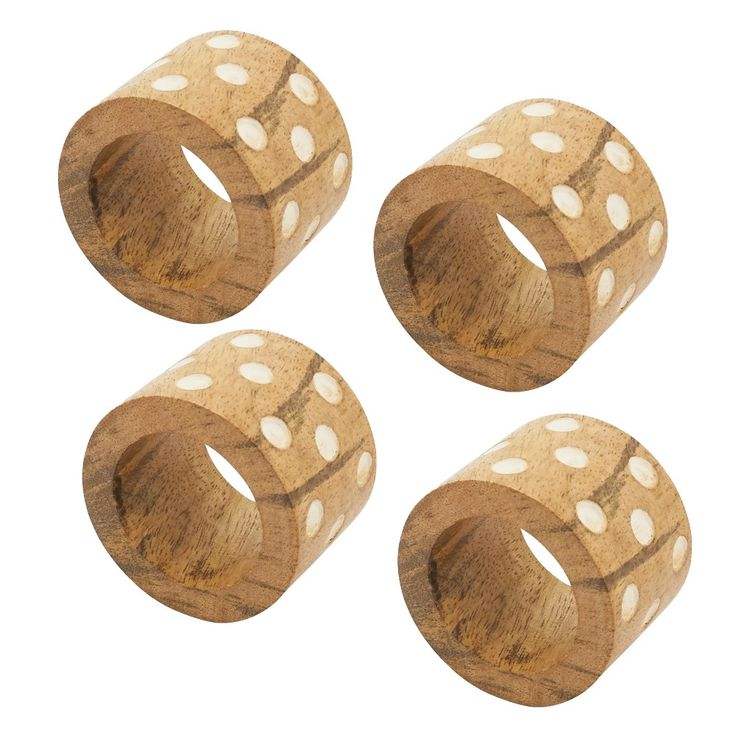 Anneaux de serviette en bois artistiques sculptés à la main tourbillons paillettes Polka Designs Premium mangue pin bois Table à manger décor