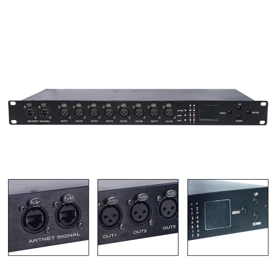 Convertisseur de signal Artnet DMX RDM 8 voies, 8x512, 4096 canaux, pour équipement d'éclairage de scène, DJ