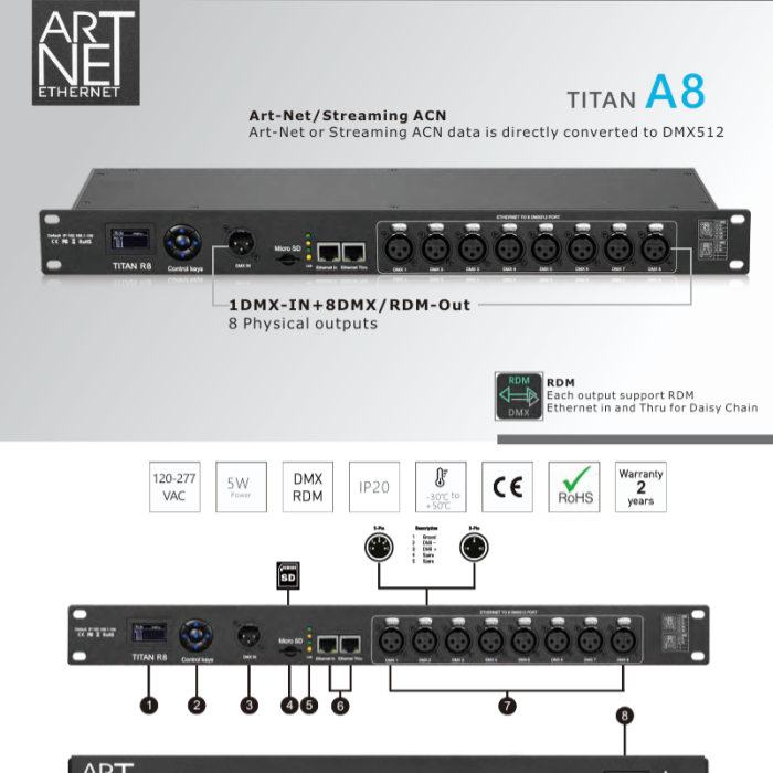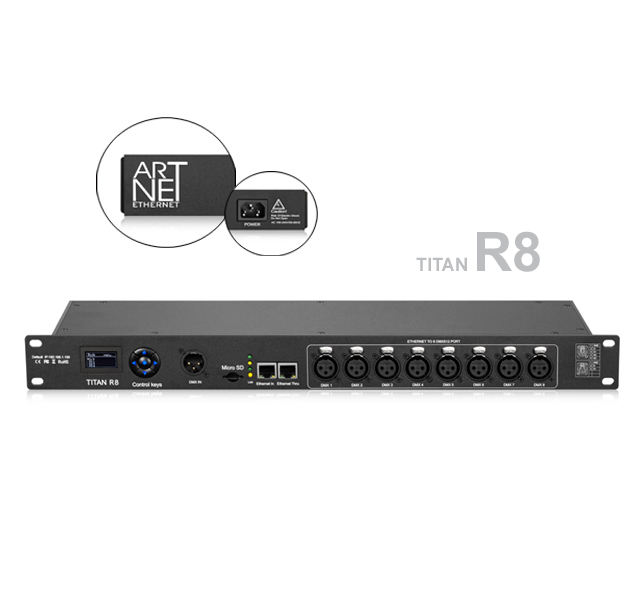 8 sorties (chaque sortie 512 canaux DMX)
