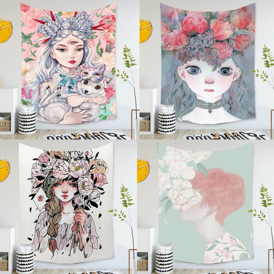 Art Decor Unique Coloré Frais Illustration Série Chambre Esthétique Haute Qualité 3d Impression Numérique Tapisseries