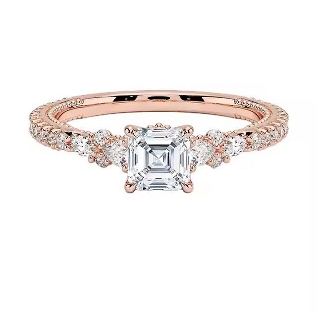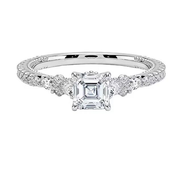 Ascher Cut Created Moissanite Ring 925 Sterling Silver Halo Wedding Engagement Jewelry Micro Pave Moissanite Ring For Women
