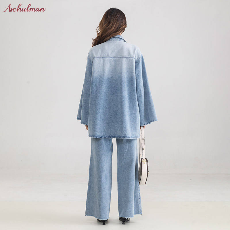 Aschulman Ensemble chemise musulmane en jean personnalisé Ensemble chemise et pantalon pour femmes musulmanes Ensembles chemise et pantalon en denim 2 pièces islamique modeste pour femmes