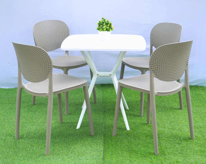 Chaise de jardin en plastique moulé gris cendre haut de gamme avec trous - Imperméable, durable, confortable et empilable - Mobilier d'extérieur