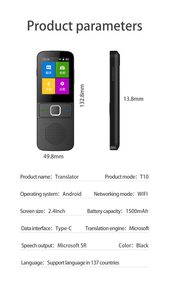 Asher T10 traducteur intelligent portable 137 langues WiFi automatique électronique chinois et anglais hors ligne et fonctionnalités en ligne