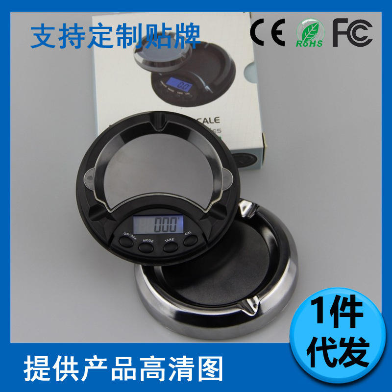Balance de bijoux en forme de cendrier, affichage LCD rond, mesure de poids portable, précision 0,1g, balance de poche alimentée par piles