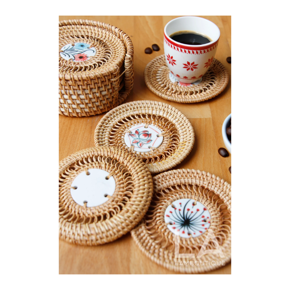 Tapis de tasse à thé en rotin tissé à la main, protecteur de table résistant à la chaleur, accessoire de décoration d'intérieur