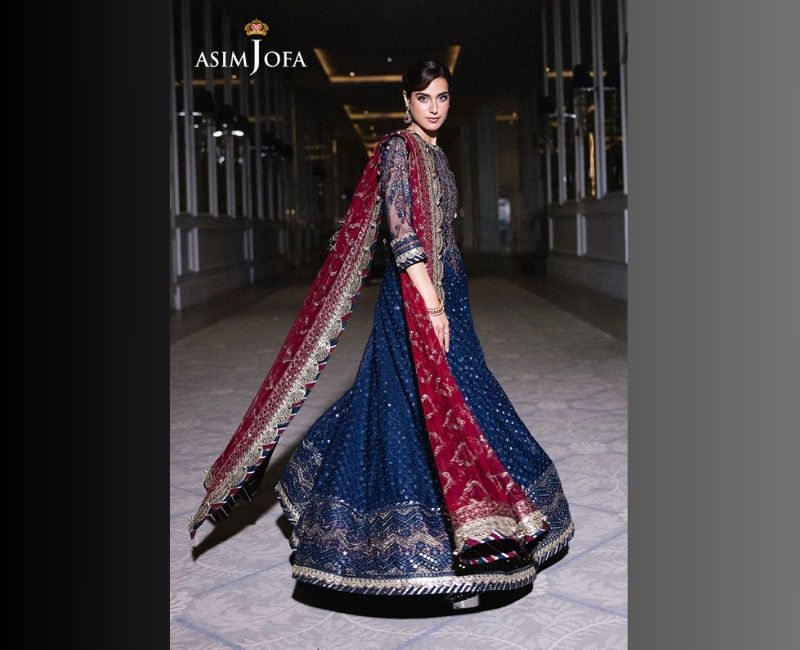 Asim Jofa Costumes de luxe brodés pour femmes Collection festive Sumaira Stitched 3 Pcs Anarkali Robes de soirée Fantaisie Dupatta